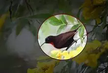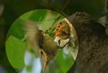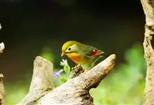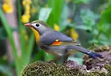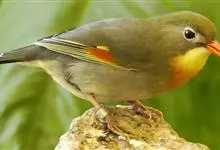 银耳相思鸟小型鸟类,体长14~18厘米。头顶黑色,耳羽银灰色,前额橙黄色;外侧飞羽橙黄色,基部朱红色,极为鲜艳、醒目。尾圆形,尾上、尾下覆羽朱红色,尾暗灰褐色,外侧尾羽橙黄色,其余上体橄榄绿或橄榄黄色。…全部>>