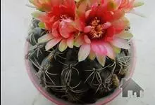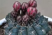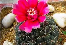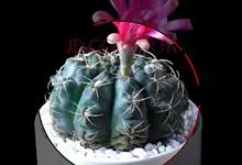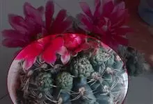 绯花玉 Speg.)是仙人掌科、裸萼球属多肉植物,植株呈扁球形,表皮墨绿色,刺针状,每个刺座有5枚灰色周刺,花生于球体顶端,夏季开花,花色有白、粉红、深红等。果实纺锤形,深灰绿色,种子黑色。…全部>>