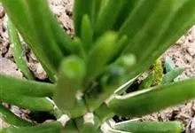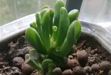 筒叶花月,是景天科青锁龙属的多年生草本植物。植株多分株,灌木状,茎较粗壮,圆柱形,表皮灰褐色;叶片肉质,互生,呈圆筒状,簇生于茎或分枝顶端,叶端呈斜截形,截面为椭圆形;花呈星状,淡白色;花期秋季。…全部>>