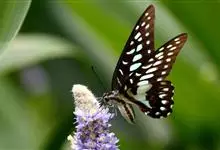 青带凤蝶Graphium sarpedon ,又名青凤蝶,是最普遍的中型凤蝶,飞行速度很快。青带凤蝶的翅膀中央有许多浅蓝色的斑点,很整齐地排列成一条直线。这些斑点由上而下逐渐变大,就像一条青色的带子。全部>>