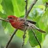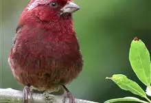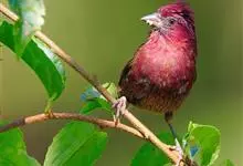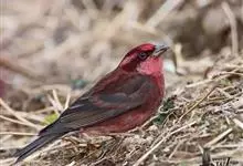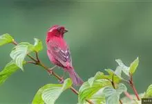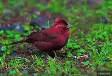 酒红朱雀小型鸟类,体长13~15厘米。雄鸟通体深红色,头部深朱红或棕红色,下背和腰玫瑰红色,眉纹粉红色而具丝绢光泽。两翅和尾黑褐或灰褐色、具暗红色狭缘,内侧两枚三级飞羽具淡粉红色先端。…全部>>