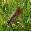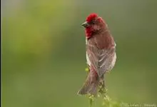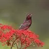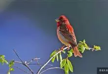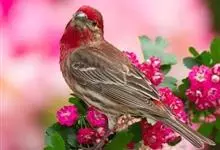 普通朱雀是雀形目雀科朱雀属鸟类,又名红朱雀、马料、青麻料。雄鸟上体红色,下体淡红色;头部、喉部、胸部及腰部亮红色;背部褐色染红色;两翼及尾黑褐色,羽缘染红色。雌鸟上体橄榄褐色,下体近白色,…全部>>