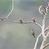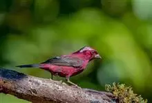 酒红朱雀小型鸟类,体长13~15厘米。雄鸟通体深红色,头部深朱红或棕红色,下背和腰玫瑰红色,眉纹粉红色而具丝绢光泽。两翅和尾黑褐或灰褐色、具暗红色狭缘,内侧两枚三级飞羽具淡粉红色先端。…全部>>