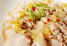 梅菜扣肉,汉族传统名菜,属客家菜 。制作材料有五花肉、梅菜、葱白、姜片等。全部>>