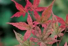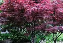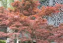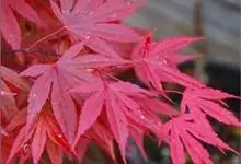 红枫,园艺种,槭树科槭属落叶小乔木,高5~8 m;树冠伞形,枝条开张,细弱。单叶对生,近圆形,薄纸质,掌状7~9深裂,裂深常为全叶片的1/2~1/3,基部心形,裂片卵状长椭圆形至披针形,先端尖,…全部>>