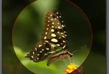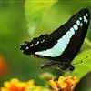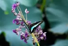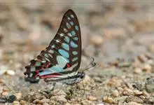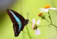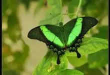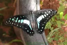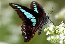 青带凤蝶Graphium sarpedon ,又名青凤蝶,是最普遍的中型凤蝶,飞行速度很快。青带凤蝶的翅膀中央有许多浅蓝色的斑点,很整齐地排列成一条直线。这些斑点由上而下逐渐变大,就像一条青色的带子。全部>>