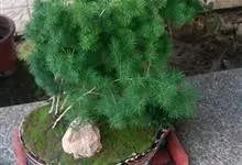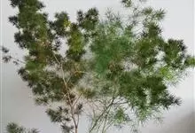 蓬莱松是天门冬科、天门冬属多年生丛生草本植物。宿存,圆柱形肉质根,纵截面为绿色和表面灰色。植株高可达3米。茎呈圆柱形或近四边形,底部木质化,具有灰色或灰褐色。幼嫩的茎在每个节上都被紫绿色鳞片包,…全部>>
