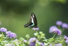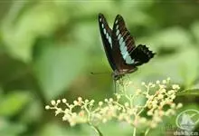 青带凤蝶Graphium sarpedon ,又名青凤蝶,是最普遍的中型凤蝶,飞行速度很快。青带凤蝶的翅膀中央有许多浅蓝色的斑点,很整齐地排列成一条直线。这些斑点由上而下逐渐变大,就像一条青色的带子。全部>>