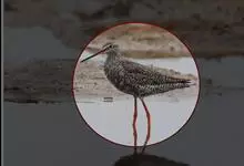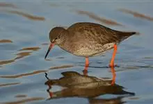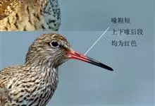 红脚鹬:体长28厘米,上体褐灰,下体白色,胸具褐色纵纹。飞行时腰部白色明显,次级飞羽具明显白色外缘。尾上具黑白色细斑。虹膜黑褐色,嘴长直而尖,基部橙红色,尖端黑褐色。脚较细长,亮橙红色,…全部>>