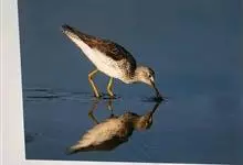 小黄脚鹬,是丘鹬科鹬属的一种动物。小型涉禽,体长23-25厘米。嘴较细直、黑褐色。脚较长、橙黄色。夏羽头、颈、胸具褐色纵纹,眼周有显著的白色圈,在暗色的头上甚为醒目。肩、背、三级飞羽黑色具白色斑点。…全部>>
