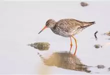 红脚鹬:体长28厘米,上体褐灰,下体白色,胸具褐色纵纹。飞行时腰部白色明显,次级飞羽具明显白色外缘。尾上具黑白色细斑。虹膜黑褐色,嘴长直而尖,基部橙红色,尖端黑褐色。脚较细长,亮橙红色,…全部>>