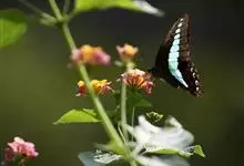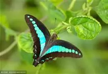 青带凤蝶Graphium sarpedon ,又名青凤蝶,是最普遍的中型凤蝶,飞行速度很快。青带凤蝶的翅膀中央有许多浅蓝色的斑点,很整齐地排列成一条直线。这些斑点由上而下逐渐变大,就像一条青色的带子。全部>>