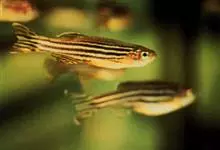 斑马鱼是鲤形目鲤科短担尼鱼属的鱼类,又名蓝条鱼、花条鱼、斑马担尼鱼。体呈纺锤形。背部橄榄色,体侧从鳃盖后直伸到尾末有数条银蓝色纵纹,臀鳍部也有与体色相似的纵纹,尾鳍长而呈叉形。雄鱼柠檬色纵纹,…全部>>