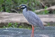 夜鹭是中型涉禽,体长46-60厘米。体较粗胖,颈较短;嘴尖细,微向下曲,黑色;胫裸出部分较少,脚和趾黄色;头顶至背黑绿色而具金属光泽;上体余部灰色;下体白色;枕部披有2-3枚长带状白色饰羽,下垂至背上,…全部>>