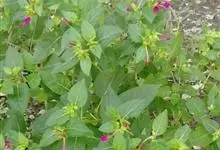 即紫茉莉,英文名:Four-o'clock,Marvel of Peru,为紫茉莉科、紫茉莉属多年生草本植物,一年生栽培。株高50~80cm。根粗壮,茎多分枝而散生。叶对生,卵形或心脏形。花数朵簇生…全部>>