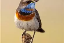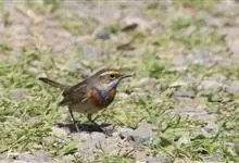 蓝点颏亦称“蓝喉歌鸲”,通称蓝靛颏儿。身体大小和麻雀相似,体长12-13厘米,体重17-18克。头部、上体主要为土褐色。眉纹白色。尾羽黑褐色,基部栗红色。颏部、喉部辉蓝色,下面有黑色横纹。下体白色。…全部>>