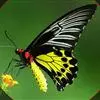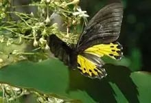 金裳凤蝶是凤蝶科、裳凤蝶属的动物。金裳凤蝶身体呈黑色,头、颈和胸侧有红毛,腹部有黑黄两色相间条纹,雄蝶前翅黑色,具黑天鹅绒光泽,各脉两侧灰白色,后翅金黄色,各室外缘有等腰三角形黑斑1枚,斑内侧有晕,…全部>>