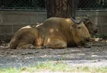 羚牛,偶蹄目牛科羚牛属哺乳动物,俗称扭角羚、野山牛、盘羊。其体形粗壮。尾短。吻鼻部隆起且裸露。前额隆起,毛短而蓬松。角基粗,由头顶长出后先向上升起,又突然翻转,靠近头部,复向外伸,然后又向后弯转,…全部>>