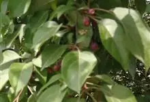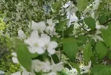 山荆子 Borkh.):为落叶乔木,树高可达4-5米,最高可达10米以上。灰褐色,光滑,不易开裂。新梢黄褐色,无毛。嫩梢绿色微带红褐。叶片椭圆形,先端渐尖,基部楔形,叶缘锯齿细锐。伞形总状花序。花白色,…全部>>