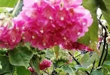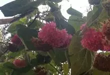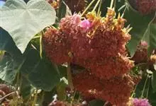 非洲芙蓉 是梧桐科,非洲芙蓉属常绿中型灌木或小乔木,高可达15米。树冠圆形,枝叶密集。树枝棕色,叶面质感粗糙,叶片互生,心形,叶缘顿锯齿,掌状脉,花从叶腋间伸出,伞形花序,冬季开花,…全部>>