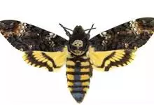 鬼脸天蛾,是鳞翅目天蛾科面形天蛾属动物。成虫翅展100~125毫米,体黑褐色;胸背有骷髅形斑纹;卵圆球形,直径约2毫米,淡黄绿色,表面光滑;老熟幼虫体长70~90毫米,蛹体长约56毫米;前翅为褐色,…全部>>