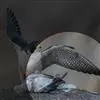 燕隼:是隼科、隼属的鸟类。体长约36厘米,体重140-340克。体形比猎隼、游隼等都小,为小型猛禽,雌鸟比雄鸟稍大;头部和颈后主要为灰黑色,颈后有一乳白色领斑;上体其余部分羽毛灰色,尾部稍淡,…全部>>