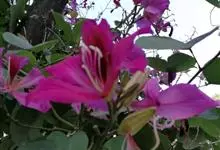 羊蹄甲,别名紫花羊蹄甲、玲甲花,是豆科羊蹄甲属的一种常绿乔木或灌木。树冠开展,枝桠低垂;树皮灰色至暗褐色,近光滑。枝幼时微被灰色短柔毛,后毛脱落;叶硬纸质,近圆形,基部浅心形,…全部>>