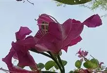 羊蹄甲,别名紫花羊蹄甲、玲甲花,是豆科羊蹄甲属的一种常绿乔木或灌木。树冠开展,枝桠低垂;树皮灰色至暗褐色,近光滑。枝幼时微被灰色短柔毛,后毛脱落;叶硬纸质,近圆形,基部浅心形,…全部>>