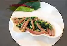 韭菜拌海肠是中国菜系鲁菜菜系中很有特色的菜式之一,韭菜拌海肠以韭菜为主要材料,烹饪以拌菜为主。特色:海肠清脆鲜红,韭菜脆嫩鲜绿,红绿相间,顺色顺味。全部>>