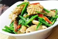 爆炒鱿鱼,是用鱿鱼制作的一道家常菜。鱿鱼有少量的脂肪和碳水化合物,含有大量的胆固醇,…全部>>
