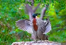 红腹角雉属于鸡形目雉科,雄鸟体羽及两翅主要为深栗红色,满布具黑缘的灰色眼状斑,下体灰斑大而色浅。雌鸟上体灰褐色,下体淡黄色,杂以黑、棕、白斑。全部>>