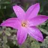 小韭兰学名韭菜莲又名风雨花、菖蒲莲、红玉帘和旱水仙,多年生草本,鳞茎卵球形,基生叶常数枚簇生,线形,扁平,花单生于花茎顶端,下有佛焰苞状总苞,花玫瑰红色或粉红色,蒴果近球形,种子黑色,花期夏秋。韭莲…全部>>