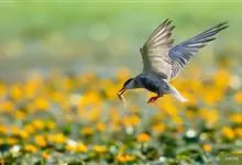 白翅浮鸥是鸥科、浮鸥属下的一种小型水鸟。夏羽嘴暗红色,脚红色。头、颈、翕和下体黑色。翼灰色,翼上小覆羽白色,腰、尾亦为白色,飞翔时除尾和翼有部分白色外,通体黑色。冬羽嘴黑色,脚暗红色,头、颈和下体白色,…全部>>