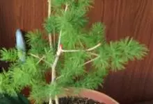 蓬莱松是天门冬科、天门冬属多年生丛生草本植物。宿存,圆柱形肉质根,纵截面为绿色和表面灰色。植株高可达3米。茎呈圆柱形或近四边形,底部木质化,具有灰色或灰褐色。幼嫩的茎在每个节上都被紫绿色鳞片包,…全部>>