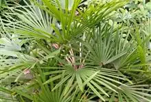 矮棕竹:丛生灌木,高1米或更高些,茎圆柱形,有节,上部被紧密的网状纤维的叶鞘,纤维毛发状,淡褐色。叶掌状深裂,裂片7-20片,线形,具1-2条肋脉,叶柄约与叶片等长,较细,两面凸起,边缘平滑。花雌雄…全部>>