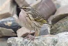 粉红胸鹨:属小型鸣禽,体重18-27克,体长13-18厘米。非繁殖期粉皮黄色的粗眉线明显,背灰而具黑色粗纵纹,胸及两胁具浓密的黑色点斑或纵纹。虹膜暗褐色;嘴黑褐色;下嘴基部色较淡,呈角褐色;跗蹠和趾…全部>>
