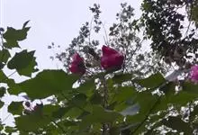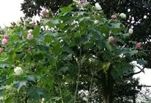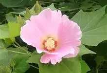 海滨木槿是锦葵科木槿属植物,落叶小乔木,株高3-5米,胸径20厘米,扁球形树冠,枝叶繁盛。厚纸质单叶互生,扁圆形、倒卵形或宽倒卵形,先端钝近平,具短突尖,基部圆形或浅心形,叶缘中上部具细圆齿,…全部>>