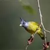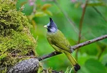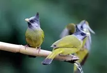凤头雀嘴鹎:属小型鸟类,体长18-22厘米。嘴粗短、呈象牙色或乳黄色,前额和脸灰色,头顶黑色,有一朝前竖立的黑色羽冠。上体橄榄绿色,下体黄绿色,尾羽黄绿色具宽阔的黑褐色端斑。…全部>>