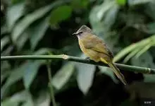 黄绿鹎,小型鸟类,体长19-22厘米。额至头顶暗褐具灰色羽缘,眼先黑色,其上面有一粗著的白纹从鼻后至眼,在黑色的头部极为醒目。上体橄榄绿褐色。颏、喉淡灰色或灰白色,胸灰褐色具橄榄黄色羽缘,…全部>>