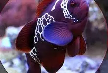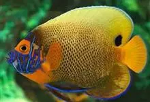 额斑刺蝶鱼,体卵圆形侧扁,有鲜明蓝色轮廓和数条鲜蓝竖纹,全身密布网格状具蓝色边缘的珠状黄点,深蓝色背鳍和臀鳍饰宝蓝色的边线,背鳍前有一蓝缘黑斑,鳃盖有蓝点,鳃盖后部及胸鳍基部为鲜黄色,眼睛周围蓝色,…全部>>