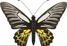 金裳凤蝶是凤蝶科、裳凤蝶属的动物。金裳凤蝶身体呈黑色,头、颈和胸侧有红毛,腹部有黑黄两色相间条纹,雄蝶前翅黑色,具黑天鹅绒光泽,各脉两侧灰白色,后翅金黄色,各室外缘有等腰三角形黑斑1枚,斑内侧有晕,…全部>>