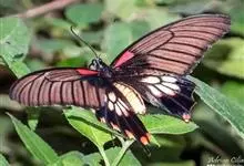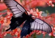 美凤蝶又名多型蓝凤蝶、大凤蝶,是鳞目凤蝶科凤蝶属动物。美凤蝶雄蝶无尾突,翅黑色,正面各翅室中部有深色条纹,分布蓝色鳞片,反面前后翅基部有红斑,后翅臀角有环状红斑。雌蝶具多型,前翅浅灰色,外缘和翅脉黑色,…全部>>