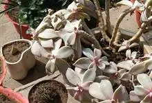 胧月 E.Walther)是景天科,风车草属多肉植物,常绿蔓生亚灌木,叶肥厚无柄,灰蓝色,阳光充足时呈粉红色,叶片枝顶簇生成莲座状,乳白色,花冠5裂,上有紫红色斑点,雄蕊两轮排列,花药鲜红色,…全部>>