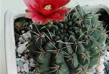 绯花玉 Speg.)是仙人掌科、裸萼球属多肉植物,植株呈扁球形,表皮墨绿色,刺针状,每个刺座有5枚灰色周刺,花生于球体顶端,夏季开花,花色有白、粉红、深红等。果实纺锤形,深灰绿色,种子黑色。…全部>>