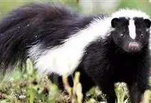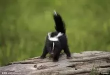 臭鼬是食肉目鼬科鼬属哺乳动物。体型与家猫相仿。全身被毛为黑色,身体两边有白色条纹;前额有一条较窄的白色条纹;尾巴呈丛毛状,有时尖端为白色。寿命为7—8年。臭鼬广泛分布在北美洲墨西哥以北的广大地区,…全部>>