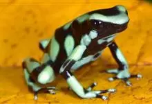 箭毒蛙,是无尾目箭毒蛙科箭毒蛙属动物。箭毒蛙体形较小,一般长1-6厘米,身上的颜色多为黑色与红色、黄色、橙色、绿色等;皮肤内有粘液分泌腺,能使皮肤随时保持湿润;四肢布满鳞纹;足间无蹼。…全部>>