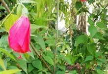 芙蓉葵是锦葵科木槿属植物,又名草芙蓉、大花秋葵,原产于北美。落叶灌木状。叶大、广卵形,叶柄、叶背密生灰色星状毛。花大,单生于叶腋,有白、粉、红、紫等色。喜阳、略耐阴,宜温暖湿润气候,忌干旱,耐水湿,…全部>>