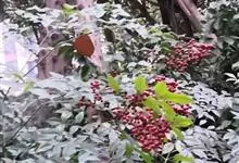 南天竹,小檗科南天竹属常绿小灌木植物,茎干较高,表面光滑无毛,红色;叶较小,叶片薄,呈椭圆形且为深绿色,无毛;花朵较小,白色带有芳香,呈四角形;果柄短且果实呈球形,橙红色;种子扁圆形。花期3-6月,…全部>>