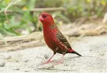 红梅花雀小型鸟类,体长9-10厘米。雄鸟通体朱红色,背、肩、胸等满布白色小斑点,两翅和尾黑褐色均具白色端斑,嘴红色,脚蜡黄色。雌鸟上体淡褐色或赭褐色,翅上中覆羽、大覆羽和内侧飞羽末端具白色斑点,…全部>>
