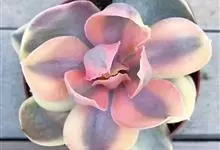 紫珍珠是景天科石莲花属的多年生肉质草本植物。植株中小型;叶片肉质,匙形,呈莲座状紧密排列;叶片粉紫色,叶缘呈粉白色,光照充足时颜色亮丽,不足时叶色会呈现深绿色或灰绿色,叶面光滑,被轻微白粉,…全部>>